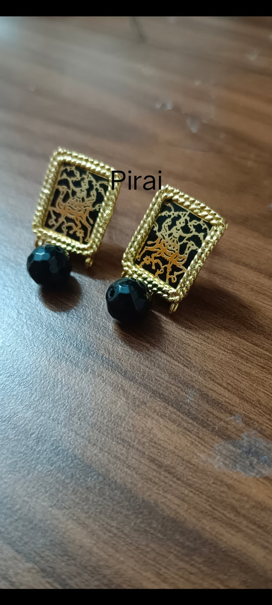 Hand-crafted Agate multifacet Black beads with Chalcedony multicolour pendant