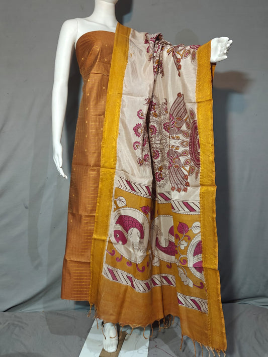 Beautiful Raw Silk top material with Kalamkari Duppatta