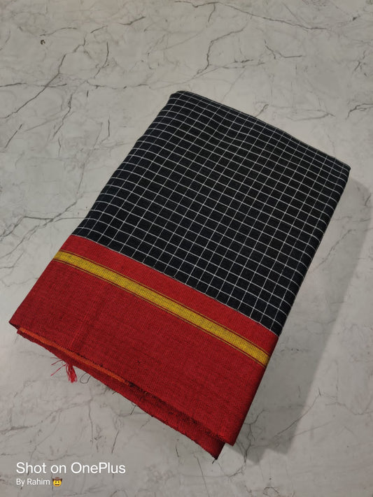 Pure Khadi Cotton Mini check Ganga Jamuna Border Handloom saree