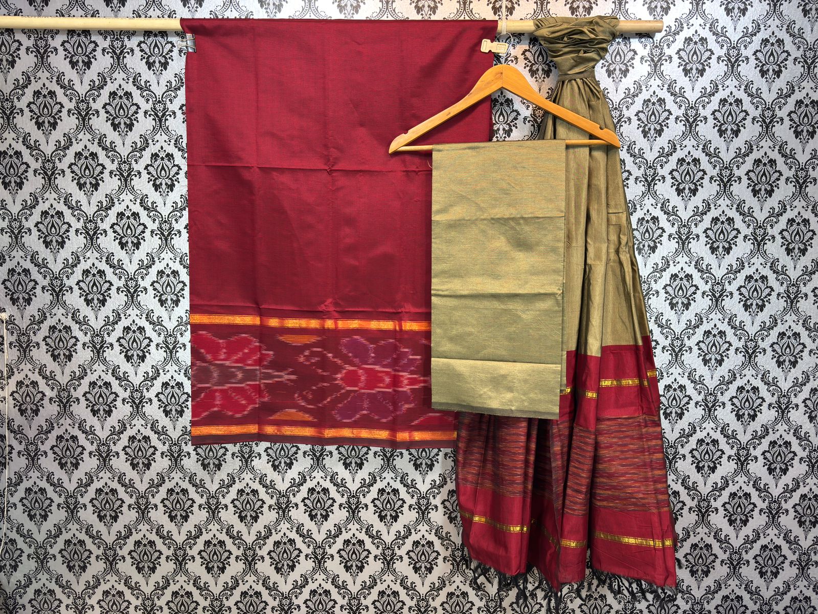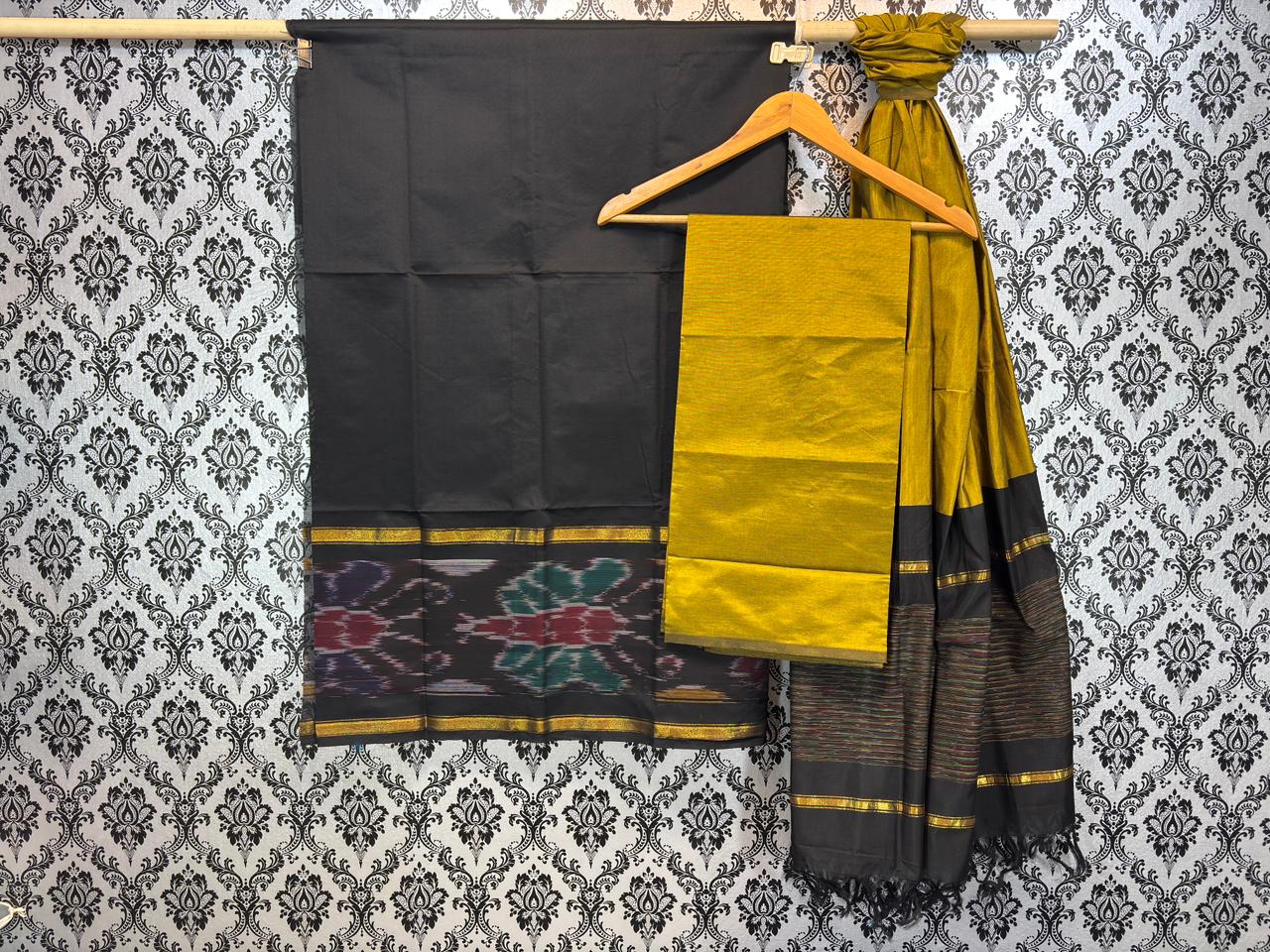 Pochampally ikkat silk mix poly cotton dress materials